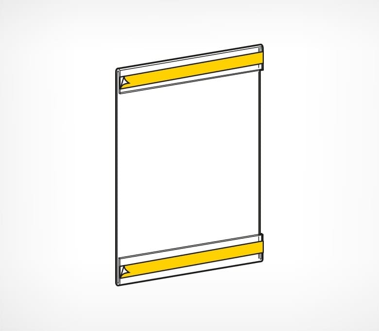 Если существует необходимость закрепить информацию на вертикальной ровной поверхности, «Карман» на вспененном скотч, лучшие решение. Две полоски скотч располагаются с задней стороны держателя. Материал ПЭТ 0.5 мм.