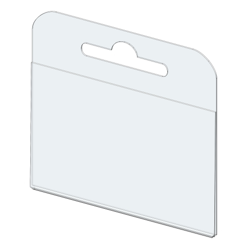 Ценникодержатель универсальный на крючок, изготовлен из  ПЭТ-0.5 мм. Навешивается на одинарный или двойной металлический крючок.  Представлены популярные размеры.