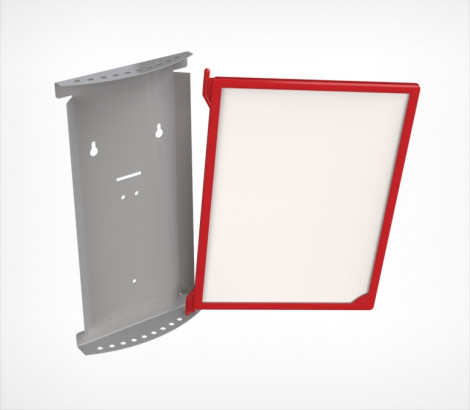 Основание для настенной перекидной системы INFOLINE на 10 рамок INFOFRAME формата А-4. Настенный держатель изготовлен из металла, имеет два отверстия «замочная скважина» для крепления на стене. Используются усиленные пластиковые рамы, INFOFRAME. Форма держателя обеспечивает надежное крепление рамок.