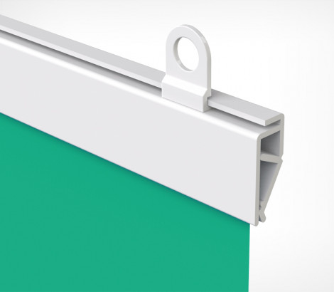 Пластиковый клик-профиль для подвешивания бумажных плакатов, тонких баннеров, плакатов на ткани. Используется с крючками CLICKER (2 крючка на 1 метр профиля). Внешние размеры ( в-т) - 20 x 6 мм., максимальная толщина вставки - 0,7мм.