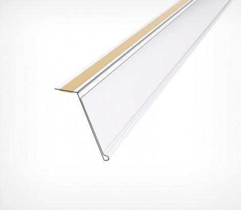 Универсальный ценникодержатель с самоклеящейся лентой. Крепится на верхней части стеллажа, полки. Угол наклона к торцу полки – 15°. Высота - 39 мм.