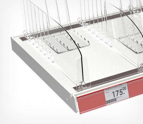 Пластиковый разделитель высотой 30 мм имеет передний Т-ограничитель высотой 35 мм. Идеальное решение для организации выкладки сигарет, лекарств, парфюмерии.