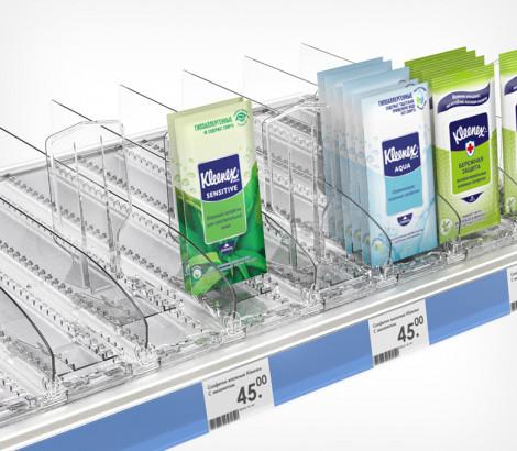 Пластиковая задняя опора используется индивидуально или в комплекте с ребристым профилем BACKLINE. Ребристые выступы в нижней части опоры удерживают плоские упаковки товара, обеспечивая его идеальную подачу покупателю.