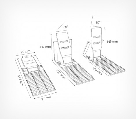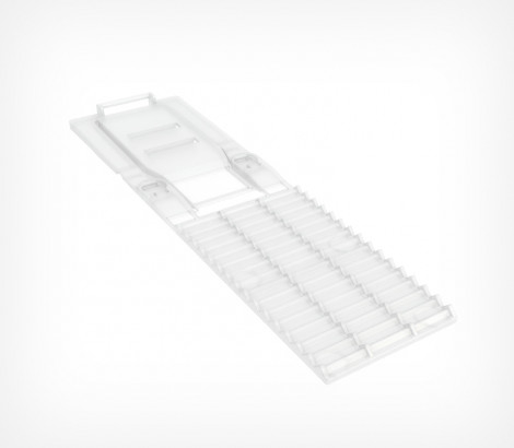 Пластиковая задняя опора FLEX-BACK имеет удлиненную переднюю ребристую часть для увеличенной загрузки товарами. Спинка опоры имеет два положения наклона: 60° и 80°. Для более плотного крепления на полке возможна установка демпферов (поставляются отдельно). Для фиксации на металлических полках может быть укомплектована магнитами (поставляются отдельно).
