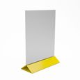 МЕНЮХОЛДЕР ФОРМАТА А-4, С НИЖНЕЙ ЧАСТЬЮ РАЗЛИЧНЫХ ЦВЕТОВ, КЛАСИЧЕСКОГО ВИДА.  СОСТОИТ ИЗ ДВУХ ЧАСТЕЙ,  ПРОЗРАЧНОГО Т-ОБРАЗНОГО ПЛАНШЕТА И НИЖНЕГО ДЕРЖАТЕЛЯ, ТРЕУГОЛЬНОЙ ФОРМЫ. ПОДХОДЯЩИЕ ИЗДЕЛИЕ, ПРИ НЕОБХОДИМОСТИ ПО ОСОБЕННОМУ ВЫДЕЛИТЬ ИНФОРМАЦИЮ.